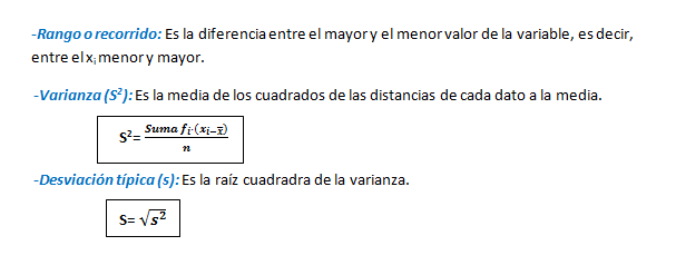 Las medidas de dispersión nos sirven para darnos una idea de cómo se distribuyen los valores de la variable estadística con respeto a la medida.